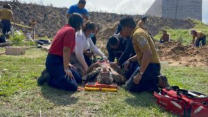 Los elementos de emergencia recibieron el apoyo de policías estatales, que se sumaron a las labores para sacar de la tumba a Ángel Santos.
