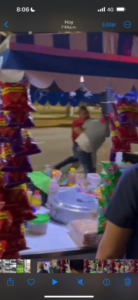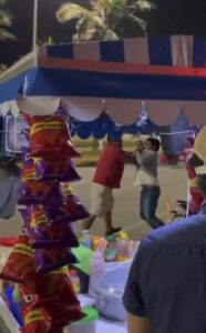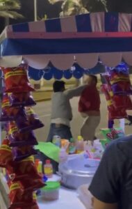 El comerciante de elotes y esquites, así como dorilocos, vestía una playera roja y short, aparentemente es muy famoso en el antro, debido a que disfruta del trago y de vender sus deliciosos elotes.