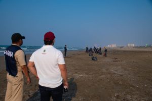 Durante la inspección, el presidente municipal constató las labores de limpieza realizadas tras el reciente arribo de hidrocarburo registrado en días pasados, constatando que, a lo largo del trayecto, no se detectaron restos de contaminación en la franja costera.