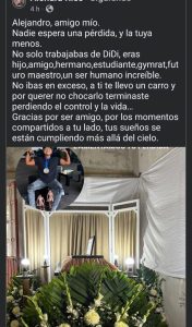 “Eras hijo, amigo, hermano, estudiante, gymrat, futuro maestro, un ser humano increíble”, escribió en redes una de sus amigas.