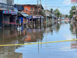 El agua sale por las alcantarillas y don Felipe Galán Martínez, señaló que esto les implica un gasto porque tendrán que rentar camionetas para llevarse las vitrinas y sus productos.