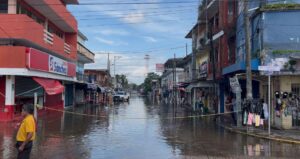 Aunque no se ha desbordado el río Coatzacoalcos, la filtración de agua en el malecón de Minatitlán ya ha comenzado a anegar las primeras calles y afectando a los comerciantes.