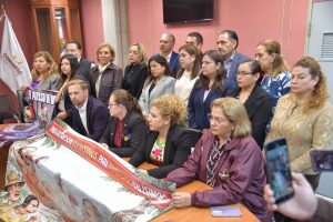 Acompañada por diputadas y diputados, la legisladora dijo que MC se metió con el pueblo equivocado y que las y los veracruzanos tienen en la bancada de Morena a quien los defienda. Señaló una guerra sostenida de la oposición y que es muy importante informar al pueblo de lo que se está haciendo y no llevar espectáculos y que “Veracruz y su gente no lo merece”.